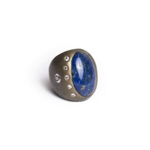 •Antique Delft Blue Ceramic Insert – Oval-shaped, hand-painted in deep cobalt on a crisp white background. This 19th-century ceramic was salvaged from antique jewelry, ensuring no new materials were mined.