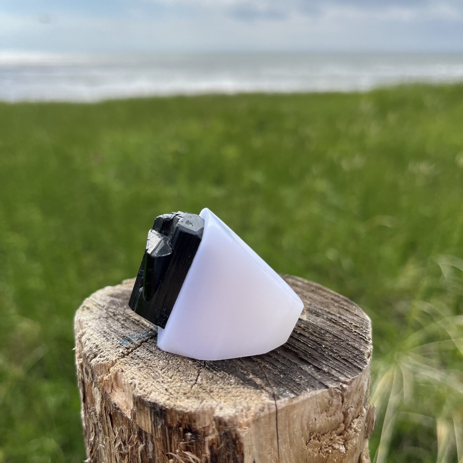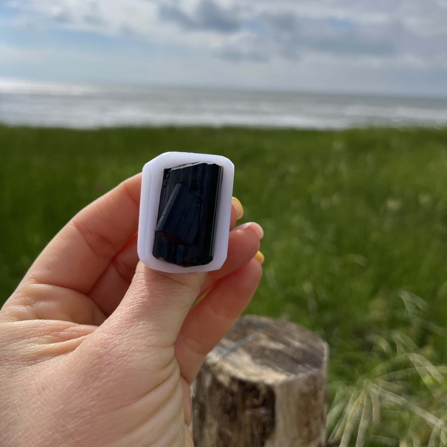 – rough gemstone Black Tourmaline – ethically sourced. One of the most powerful protective minerals. The gemstone’s energy aligns with the Earth element, and its ruling planet is Saturn.