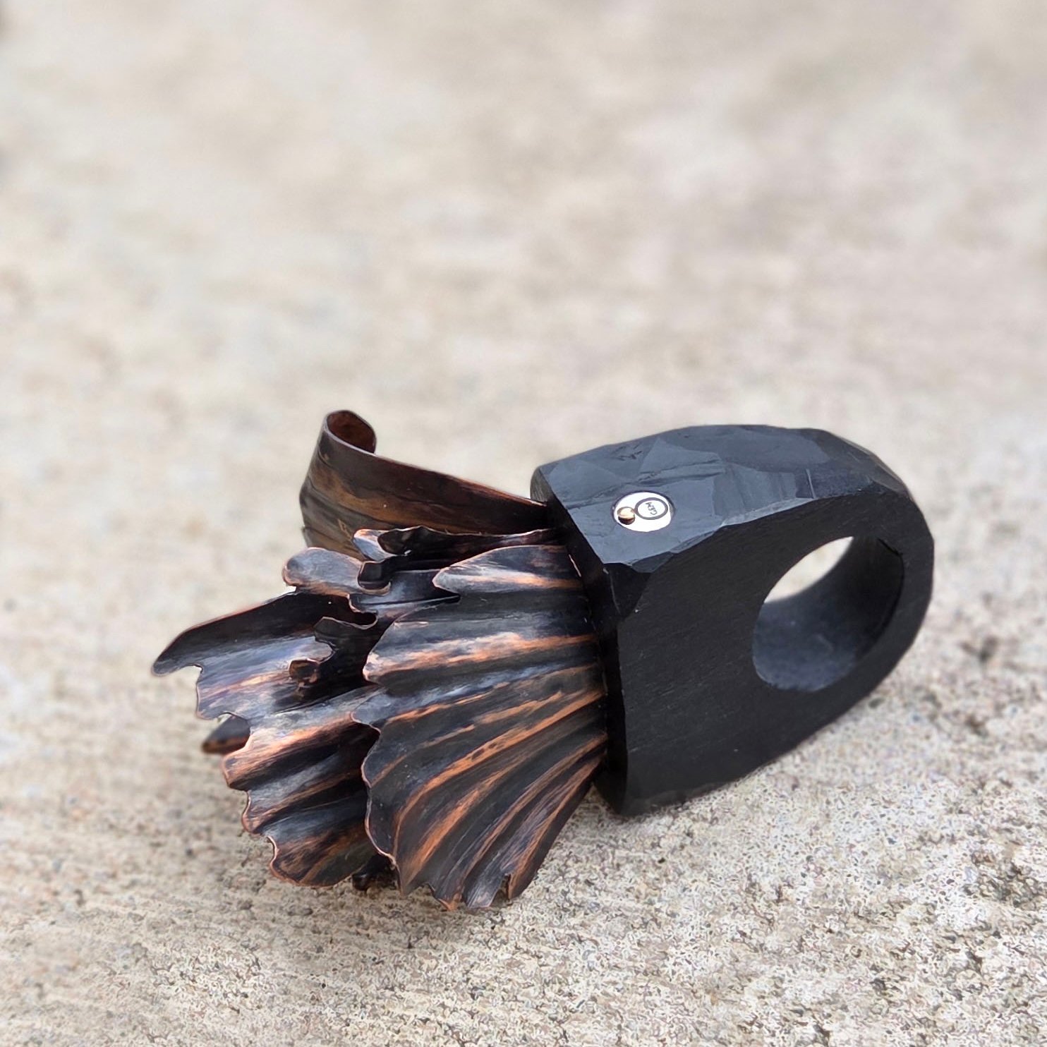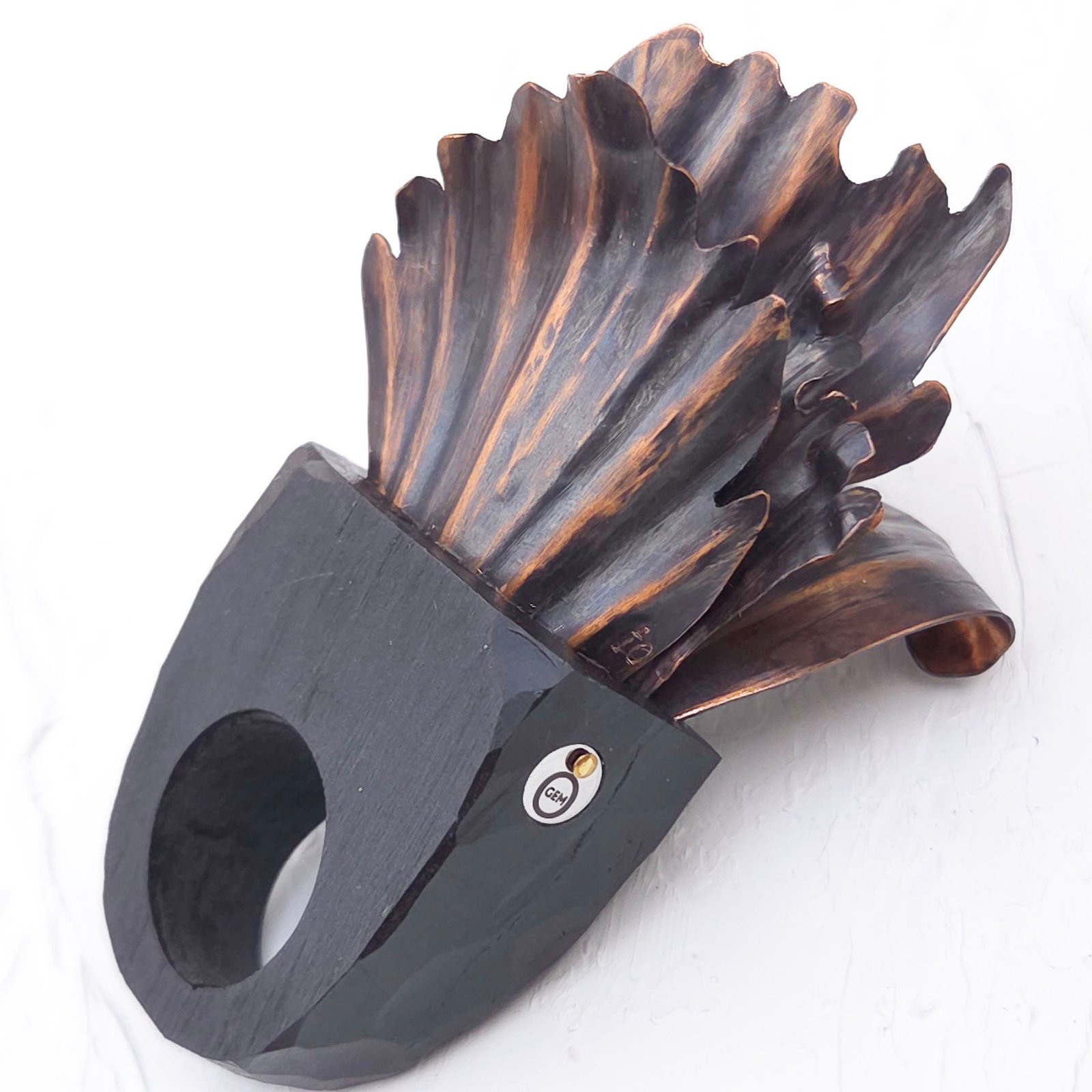 A ring crafted from black clay using O’Gem’s signature technique.